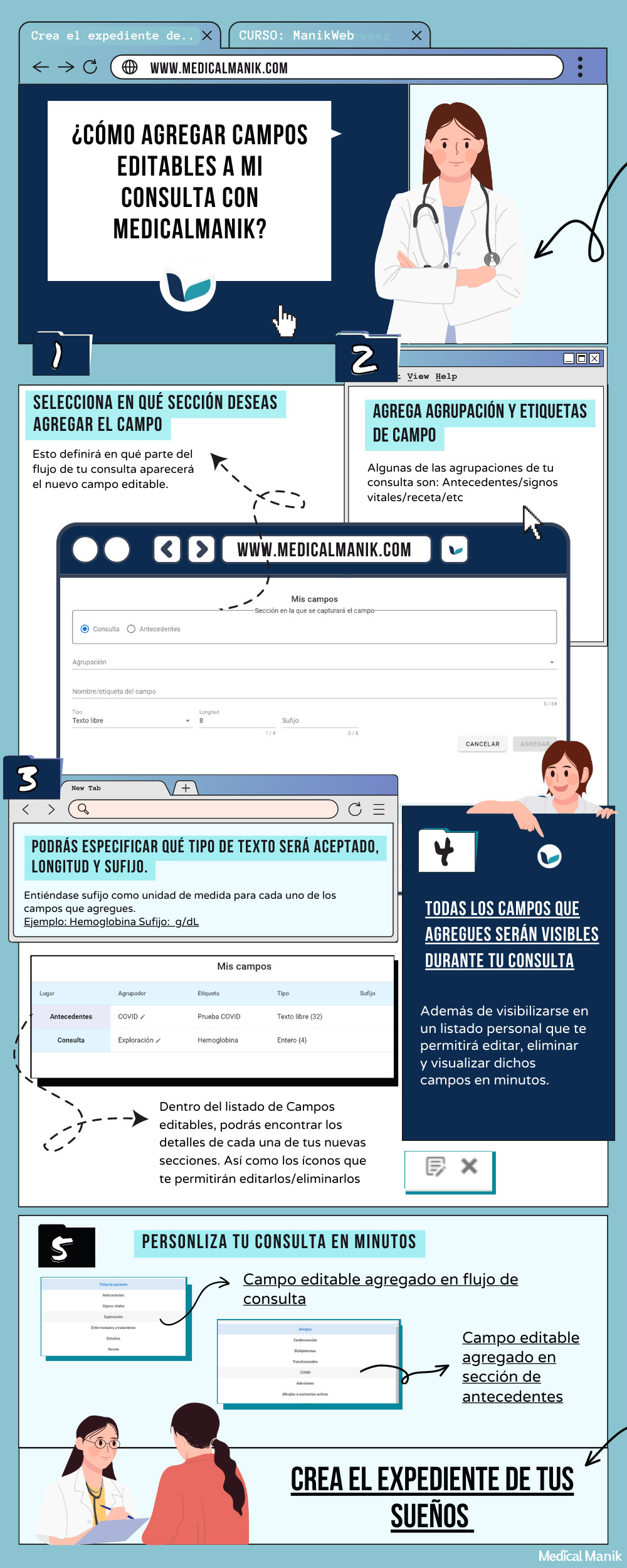 Sabemos que como especialista de la salud tienes necesidades muy particulares y no es sencillo para ti encontrar un expediente electrónico que se adecúe a ellas, sin pagar demasiado. Por ello, en MedicalManik nos dimos a la tarea de crear una herramienta que te posibilite diseñar el expediente de tus sueños sin procesos complicados ni precios excesivos.